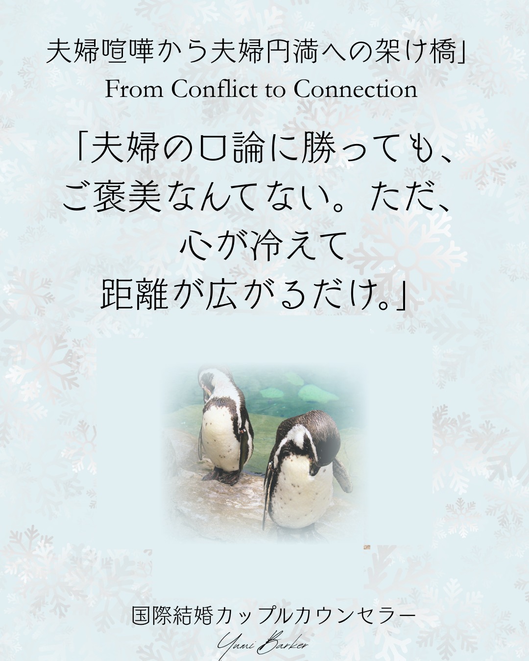 」「夫婦喧嘩から夫婦円満への架け橋From Conflict to Connection エゴで勝ち取る「ご褒美」は、短くて空しいもの。その瞬間は気持ちよくても、心の距離は広がり、パートナーがまるで理解できない“エイリアン”に感じてしまうことも。夫婦喧嘩を減らすには、「勝つこと」より「分かり合おうとすること」。その姿勢こそが、愛を育てる鍵です。The “reward” you win through ego is fleeting and empty.It may feel satisfying for a moment, but it only widens the emotional gap—until your partner feels like an alien you can no longer understand.To reduce fights in marriage, aim not to win, but to understand.That mindset is the true key to growing love.#夫婦喧嘩を減らすヒント#エゴより思いやり#心の距離を縮めよう#理解し合える関係#夫婦関係の築き方#LessFightingMoreUnderstanding#EgoDoesntWinLove#ChooseConnection#FromConflictToConnection#marriagewisdom #夫婦喧嘩 #国際結婚 #離婚回避 #円満離婚 #海外在住日本人妻 #パース生活 #オーストラリア暮らし #interculturalmarriage #relationshipconflict #marriagecounselling #japanesecounsellorinperth #perthlife #japanesewife